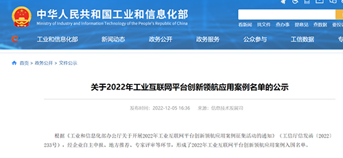 12月5日,工信部信息技術發展司發布2022年工業互聯網平臺創新領航應用案例公示名單,一批技術先進、模式創新、成效顯著、易復制推廣的工業互聯網平臺創新領航應用案例入圍,其中包括一批紡織企業應用案例。