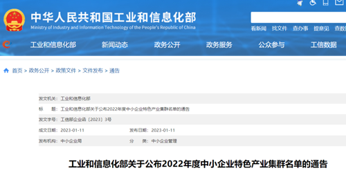 | 工信部公布2022年度中小企業特色產業集群名單,五個紡織及相關集群位列其中 |