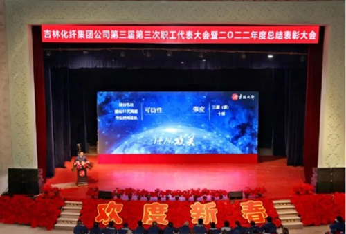 在吉林化纖集團(tuán)公司第三屆第三次職代會(huì)暨2022年度總結(jié)表彰大會(huì)上,集團(tuán)公司班子成員,各子公司、各中心、部室負(fù)責(zé)人,中層及以上干部,受表彰的先進(jìn)集體、優(yōu)秀個(gè)人代表及各單位職工代表共計(jì)1200余人參加會(huì)議。