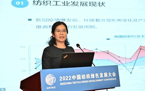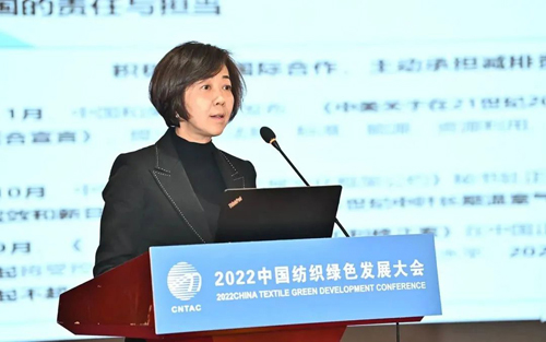 她表示,綠色發(fā)展是紡織行業(yè)高質(zhì)量發(fā)展的必然選擇,是鞏固優(yōu)勢產(chǎn)業(yè)領(lǐng)先地位的重要舉措,正在成為行業(yè)發(fā)展的新引擎、新動能。針對行業(yè)未來綠色發(fā)展,她提出四點(diǎn)建議:一是加強(qiáng)頂層設(shè)計推進(jìn)紡織綠色低碳轉(zhuǎn)型;二是加強(qiáng)協(xié)同創(chuàng)新加大紡織綠色低碳技術(shù)應(yīng)用推廣;三是加快結(jié)構(gòu)優(yōu)化形成綠色低碳生產(chǎn)生活方式;四是完善標(biāo)準(zhǔn)認(rèn)證完善綠色轉(zhuǎn)型服務(wù)體系。