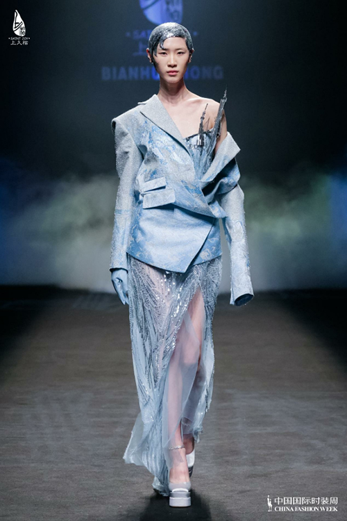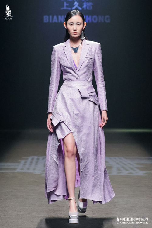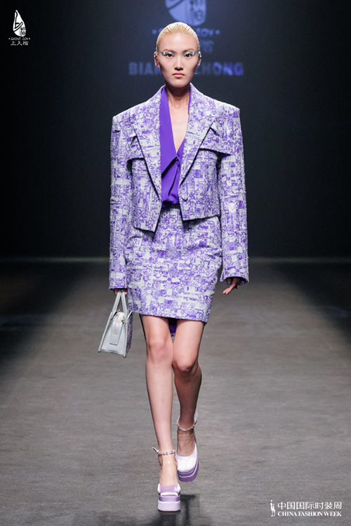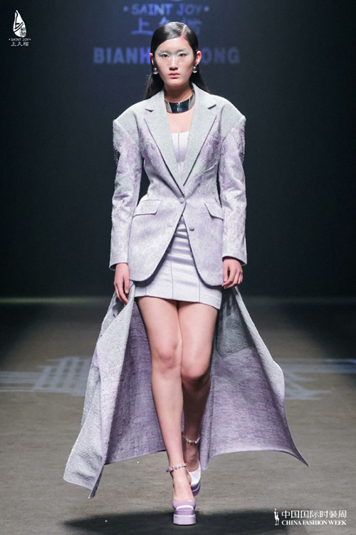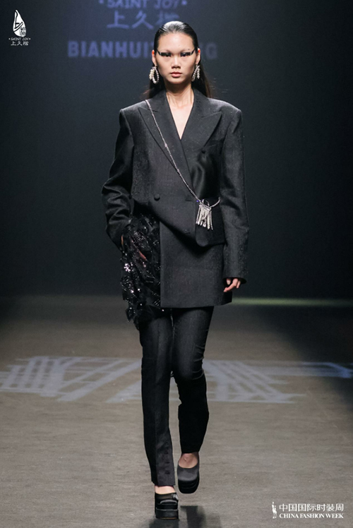 3月30日,上久楷?邊惠中2023秋冬高級成衣系列在北京 751D?PARK 第一車間傾力呈現。本系列以“有巢”為主題,以城市天際線的漸變之姿為創意元素。青年時裝設計師邊惠中從回溯歷史與審視現實的視角出發,以中性化、前瞻性的設計語言,探尋傳統宋錦面料與當代建筑美學、城市視覺語言碰撞的可能性,進行了一次驚詫時光的時尚穿越之旅。