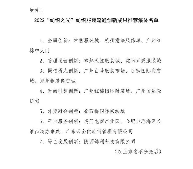 | 2022“紡織之光”紡織服裝流通創(chuàng)新成果推薦名單公示 |