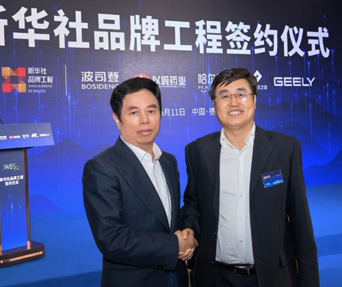 ![]() 波司登入選新華社品牌工程。高德康與新華社黨組成員、秘書長景如月合影
