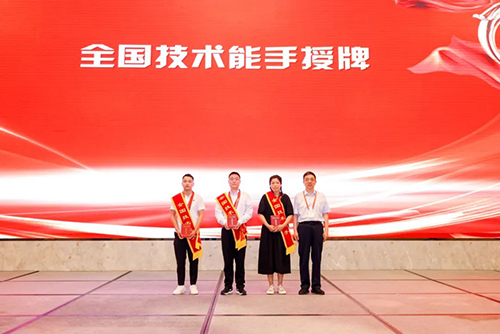 黃瀟瑾宣讀了《人力資源社會保障部關于授予2019-2020年度職業技能競賽優秀選手全國技術能手稱號的決定》。大會對江蘇德順紡織有限公司張黎明、江蘇佩捷紡織智能科技有限公司劉和、浙江臺華新材料股份有限公司王雪英進行了授牌表彰。