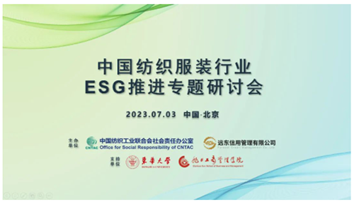 ![]() 7月3日,由中國紡織工業(yè)聯(lián)合會社會責(zé)任辦公室聯(lián)合遠(yuǎn)東信用管理有限公司共同舉辦、東華大學(xué)旭日工商管理學(xué)院支持的中國紡織服裝行業(yè)ESG推進(jìn)專題討論會在中國紡織信息中心舉行。