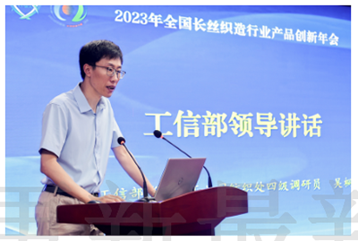 2023年全國長絲織造行業產品創新年會上,固始縣縣委常委、常務副縣長李新民進行固始縣縣情推介,介紹了當地紡織產業政策和發展規劃。他指出,紡織產業是固始縣主導產業之一,也是固始一張靚麗名片。近年來,固始縣全面掀起打造優質營商環境的熱潮。當地相關部門為項目落地投產提供了優惠政策和優質服務,保證審批最少、流程最優、效率最高的營商環境,給予企業保姆式的服務和支持,做到全方位、全程跟蹤服務,努力將項目打造成為集織造、印染、貿易于一體的產業集群。
