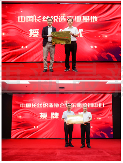 會上舉行了“中國長絲織造產業基地”授牌儀式、“中國長絲織造協會豫東南培訓中心”授牌儀式。