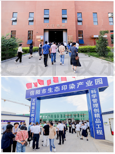 會議結束后,與會嘉賓走訪參觀了大江紡織產業園、華紡紡織產業園、信陽市生態印染園、大別山紡織服裝產業學院。