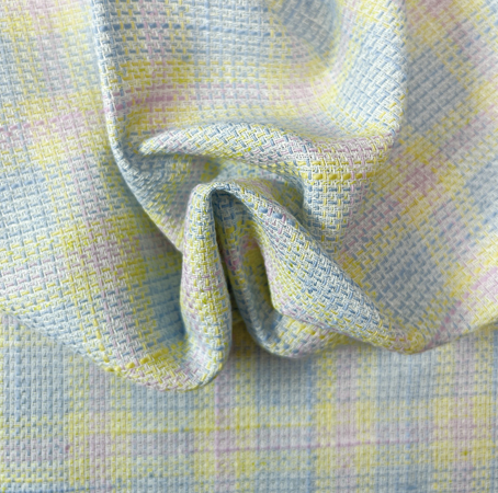 產品特點:天竹纖維手感順滑軟糯、天然抗菌,同時陽滌并網也具有獨特的風格。經紗天竹纖維和滌綸短纖維混紡,緯紗包含陽滌并網和棉彈力紗線,多種成分相結合。