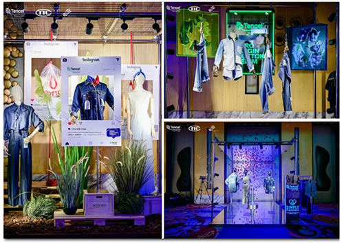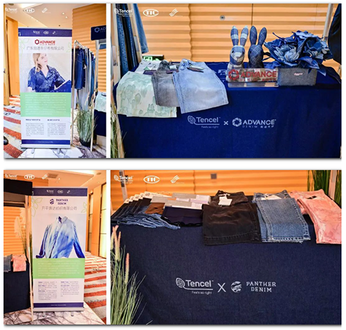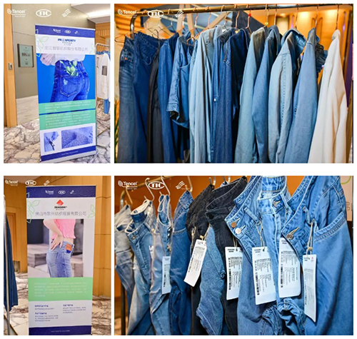 ![]() 在會場發布區內,蘭精最新的天絲?牛仔系列創新應用新品引人注目。