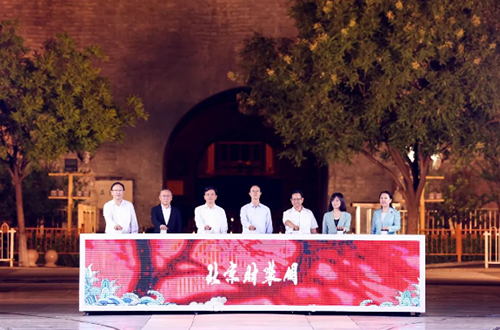 隨后,在開幕盛典“點亮中軸線”的啟動儀式上,北京市委宣傳部副部長、北京廣播電視臺黨組書記、臺長余俊生,北京市東城區(qū)委書記孫新軍,東城區(qū)委副書記、區(qū)長周金星,商務部市場體系建設司副司長尹虹,中國紡織工業(yè)聯(lián)合會副會長徐迎新,北京服裝學院黨委書記周志軍,北京時裝周組委會主席團主席、北京時尚控股有限責任公司黨委書記、董事長顧偉達等領導嘉賓上臺,伴隨冰屏上壯美的中軸線畫面,時尚之光在中軸線最具代表性的建筑上依次點亮,共同為SS2024北京時裝周開幕盛典暨勞倫斯·許、京東服飾“壯美中軸線”發(fā)布會啟幕,讓金秋北京的夜景更加絢爛,讓首都時尚名片更加閃亮。