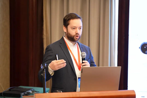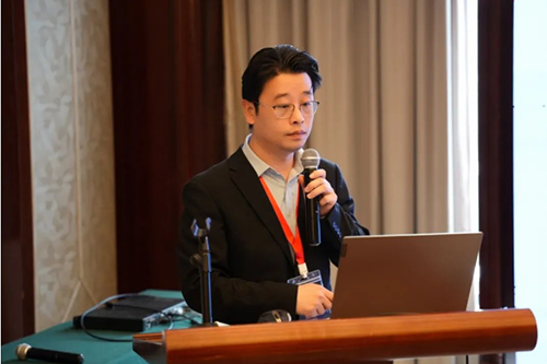 上海聚友化工有限公司市場總監羅帥介紹了《化纖新材料的前景展望》。羅帥分別從差別化PET聚酯新材料的工藝技術、廢紡織品回收成套技術、聚酯裝置乙醛回收成套技術等方面展開。羅帥介紹聚友研究的管道在線添加技術,采用自主研制的動態混合器和雙室均化器確保添加劑的均勻分散,解決了第三單體、第四單體團聚、自聚的難題,特別是針對自聚能力非常強的第三單體SIPE效果尤其明顯,該技術可實現陽離子聚酯、堿溶性聚酯原液、著色聚酯、超仿棉聚酯等多種改性聚酯的生產。