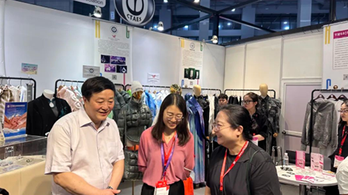 ![]() 展會期間,中國紡織工業聯合會原副會長、紡織之光科技教育基金會原理事長許坤元、陳樹津,中國紡聯黨委副書記陳偉康,中國紡聯紀委書記王久新,中國紡聯副會長陳大鵬,紡織之光科技教育基金會捐贈人、主席團主席楊勛等領導與嘉賓來到活動展區走訪參觀,并對參展院校師生給予肯定和激勵。紡織之光科技教育基金會理事長葉志民,中國紡織服裝教育學會會長倪陽生等在活動現場介紹了相關情況。