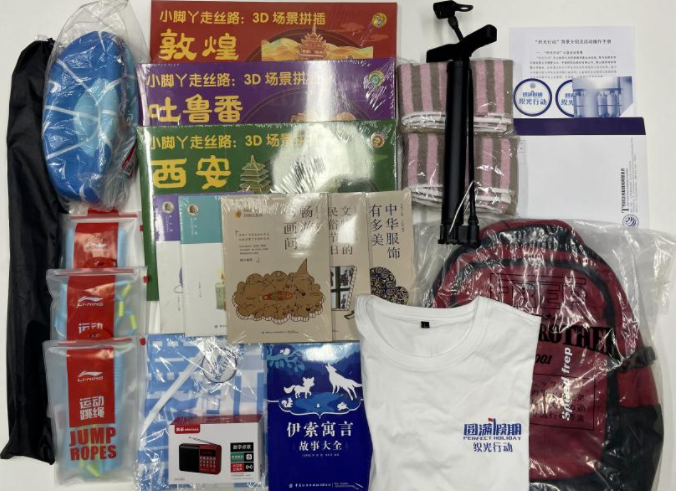 7月21日開始,200名結伴大使相繼從所在地出發,他們身著統一的T恤,佩戴著“織光行動”徽章,身背裝著書籍、運動器具、收音機、毛巾等禮物,走進鄉村,走進孩子老人中間。