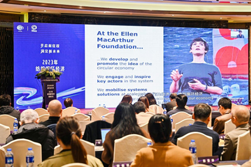 對話與交流:責任共建 攜手開啟新征程 圍繞“國際機構的循環經濟實踐”這一話題,艾倫?麥克阿瑟基金會(英國)循環時尚、國際機構與政府事務高級政策官員瓦萊麗·博伊滕、世界自然基金會(WWF)上海區域主任任文偉、SGS風險管滕理解決中心中國區總經理岳慶松分別結合各自工作領域進行了實踐分享和經驗交流。