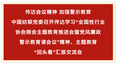 | 中國紡聯黨委召開傳達學習“全國性行業協會商會主題教育推進會暨黨風廉政警示教育課會議”精神、主題教育“回頭看”匯報交流大會 |
