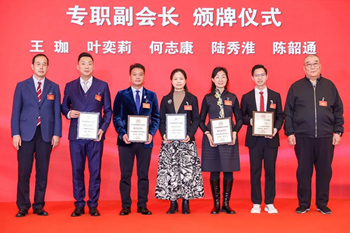 頒證環節中,劉岳屏為協會第八屆理事會監事長頒發證書,和卜曉強共同為新當選副會長、常務副會長、專職副會長頒發牌匾。