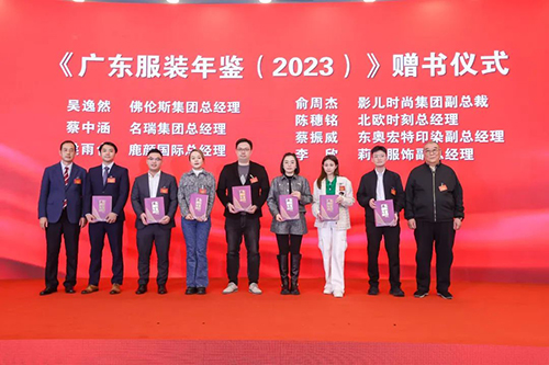 值得關注的是,本次大會,由廣東省服裝服飾行業協會、廣東省服裝設計師協會主持編撰,廣東省時尚服飾產業經濟研究院執行編著的《廣東服裝年鑒(2023)》正式發行,一批青年企業家接受贈書。作為全省服裝產業高質量發展成果史志性記錄載體,《廣東服裝年鑒(2023)》客觀、翔實地記載廣東服裝產業在2022年的發展進程及取得的重要成就,充分發揮選樹典型、彰顯品牌方面的作用,為行業提供有力資料參考。