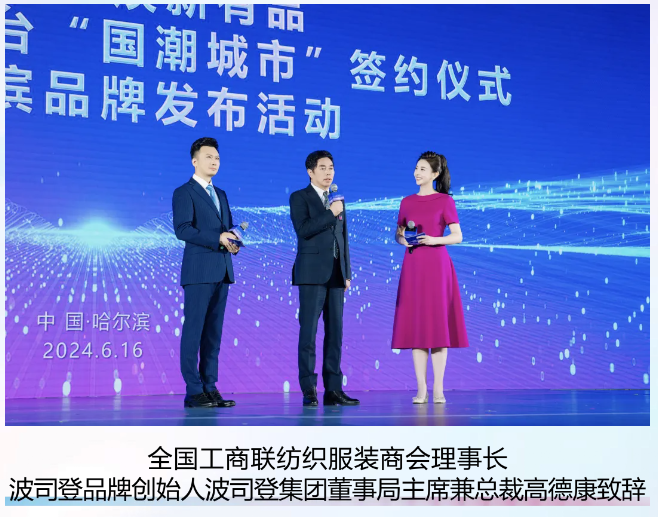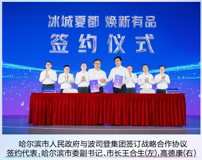 6月16日,以“冰城夏都,煥新有品”為主題的中央廣播電視總臺“國潮城市”簽約儀式暨哈爾濱品牌發布活動在哈爾濱市舉行,哈爾濱成為與總臺“國潮城市”項目簽約的首個城市。哈爾濱市人民政府與波司登集團簽訂戰略合作協議,并發布“波司登&爾濱”聯名系列時尚秀,以高站位、高起點、全方位戰略合作,成就國潮城市×領先國牌的“冰雪奇緣”。