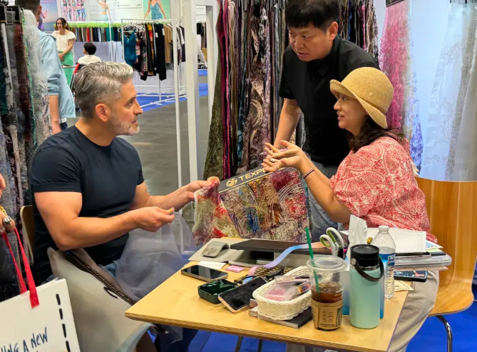 開展首日,現場人潮涌動,展會登錄處排起了長隊,本屆展會吸引了一批紡織服裝行業的重量級買家,如Target、Macy’s、JCPENNY、Athleta、American Eagle、Ralph Lauren,也迎來了眾多跨界合作買家到場參觀洽談,展廳內商貿氛圍濃厚。