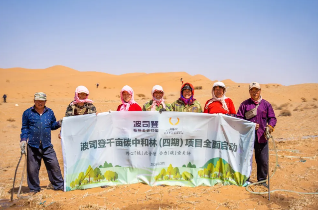 2024年,波司登還啟動了阿拉善碳中和林(四期)工程。該工程計劃在未來五年內每年造林200畝,總造林綠化面積達到1,000畝,種植苗木10,000株,為阻止騰格里沙漠東擴、減少土地沙漠化培植綠色希望,逐步實現“與受損的土地重修舊好,與自然的生命和諧共生”的目標。