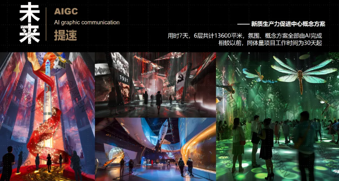 ![]() 以我們的合作伙伴筆克為例,筆克為某市做的1.36萬平方米的展廳,原來需要30天的設(shè)計(jì)時(shí)間,利用AI之后,7天就可以完成設(shè)計(jì),提高了四倍的速度,節(jié)省了75%的時(shí)間。