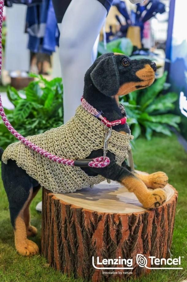 ![]() ![]() 展會期間,蘭精集團展位上人流絡繹不絕,許多國內外客商慕名而來,看趨勢、找新品、謀合作。其中,一只身著白色外套的黑棕色寵物狗在展會意外走紅,吸引許多觀展者拍照打卡,而這件外套正是采用100%天絲??萊賽爾制成,柔軟舒適、健康環保。據蘭精纖維(上海)有限公司總經理胡焱鈞介紹,除了服裝、家紡面料的運用,蘭精集團正攜手下游合作伙伴不斷開拓更多“周邊”產品,如:手鏈、填充物、鞋面,以及寵物衣服、背帶、窩等,以實現應用場景多元化。