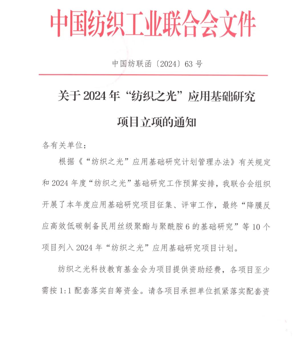 關于2024年“紡織之光”應用基礎研究項目立項的通知