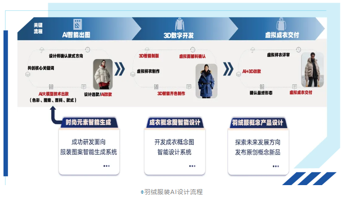 ![]() 波司登在數字化轉型過程中,實現了AI大模型技術、大數據技術、云計算技術、3D服裝數字化技術等4項技術突破,完成了AI企劃端、AI開發端、3D打版建模、虛擬成衣交付等4項關鍵流程的優化升級,在頭樣開發時間、樣衣研發成本、生產效率等方面取得顯著進步,頭樣開發時間從100天降至27天,樣衣研發降本60%以上,生產效率快反周期從21天減少到12天,運營效率大幅提升。