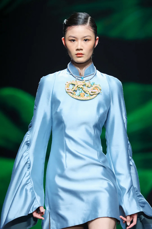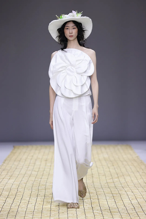 ![]() ![]() ![]() 參與“盛澤日·2025春夏中國時尚女裝流行趨勢發布”的龍泉禧里品牌,經由中國十佳時裝設計師盛亞榮的巧思巧手,圍繞起源于戰國時期的藝術瑰寶蠶絲植物“非遺花羅”展開。并大量使用花扣、盤扣傳統技藝、旗袍創新制作工藝等,兩千多年來的各類文化瑰寶在盛澤煥發全新生命力。