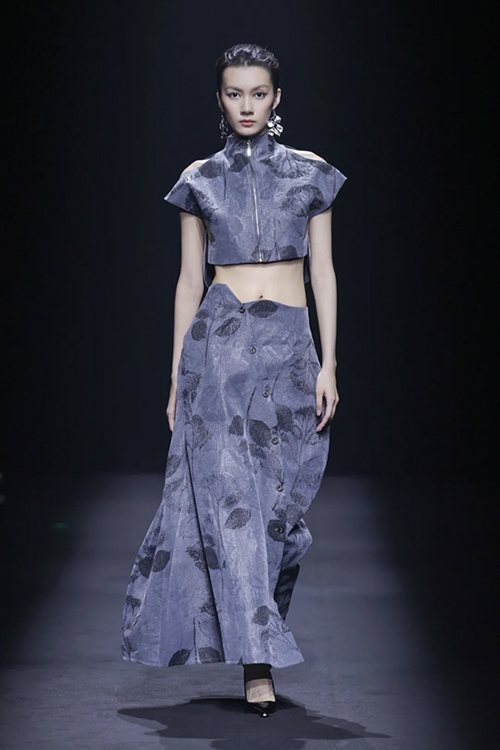 LIQINGWEI與LACRIMATORY紛紛選用天然纖維與新型科技纖維面料結合,原創圖案與紋樣融入高級質感中,也讓關注時裝周的中外設計師,看到盛澤面料投產中的無限可能與延伸。