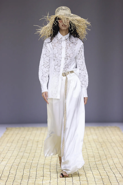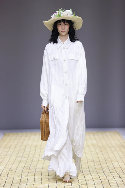 細看“柯橋日”,可持續設計理念已成氣候。本季一大亮點是設計師品牌ZUYAO SONG,延續非遺技藝在時尚中的再生,設計上結合徽派藝術,工藝上采用非遺蕪湖漿染技藝、天然礦物質和天然草本為主體的原生態環保染料,系列中還運用了大量的香云紗、羊毛、麻各類天然材質和草編工藝,始終堅持敬畏自然、熱愛生活,遵循可回收、節能、減排、0污染等可持續發展理念。
