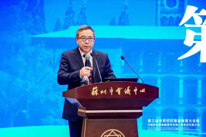 ![]() 中國紡織工業(yè)聯(lián)合會會長孫瑞哲以《守正創(chuàng)新,立德樹人,打開紡織教育新境界》為題作主旨報告。他指出,教育是強國之基,人才是強業(yè)之本,中國教育現(xiàn)代化建設(shè)已經(jīng)進入新階段。中國紡織工業(yè)與時代同頻,行業(yè)教育要聚焦新質(zhì)生產(chǎn)力,推動產(chǎn)業(yè)與新興領(lǐng)域、未來產(chǎn)業(yè)嫁接融合,為紡織新質(zhì)態(tài)提供人才新供給,同時要面向發(fā)展新形勢,培養(yǎng)應對國際競合新挑戰(zhàn)、滿足產(chǎn)業(yè)轉(zhuǎn)型新要求、解開資源束縛新課題的新型人才。孫瑞哲表示,中國紡織教育處于世界前列,但仍存在提升空間,行業(yè)教育工作要積極融入中國紡織崛起的大勢,要結(jié)合時代特征與產(chǎn)業(yè)實際,以教育現(xiàn)代化支撐行業(yè)現(xiàn)代化產(chǎn)業(yè)體系建設(shè),書寫新時代高質(zhì)量紡織教育的錦繡篇章。孫瑞哲指出,當前全國紡織服裝教育要以學科體系建設(shè)為核心,建立自主知識體系,提升源頭創(chuàng)新能力,推進紡織教育事業(yè)發(fā)展。在這其中要著力把握好以下發(fā)展方向:一是堅持全面發(fā)展,著力培育高質(zhì)人才;二是堅持與時俱進,不斷完善學科體系;三是堅持統(tǒng)籌協(xié)調(diào),持續(xù)優(yōu)化教育生態(tài);四是堅持開放融通,系統(tǒng)整合全球資源。