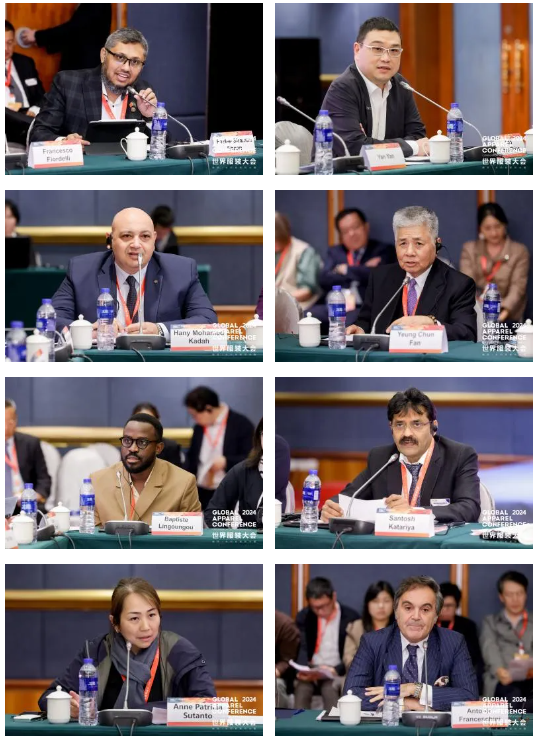 ![]() 圖:以上依次為孟加拉國針織服裝制造和出口商協會執行會長Fazlee Shamim Ehsan,柬埔寨紡織、服裝、制鞋和箱包協會秘書長Loo Chee Chien,埃及服裝及家紡行業商會執行董事Hany Mohamed Kadah,香港紡織商會會長楊勛,法國可持續聯盟理事 Baptiste Lingoungou,印度服裝制造商協會會長Santosh Katariya,印度尼西亞紡織協會副會長Anne Patricia Sutanto,意大利手工藝部門和中小型企業國家聯盟CEO Antonio Franceschini