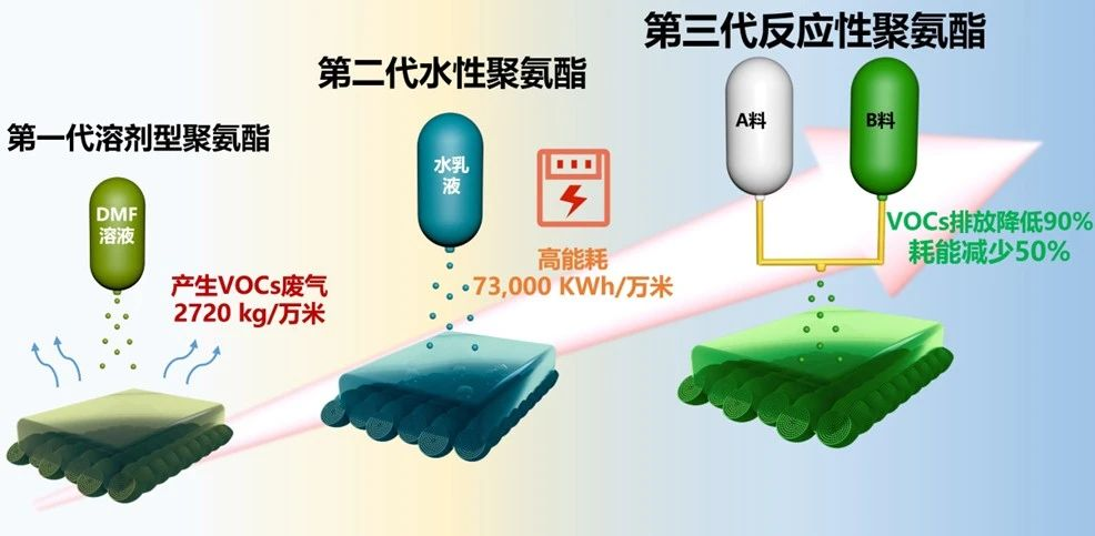 產品經第三方檢測評估碳足跡,每合成和涂覆1公斤反應性PU涂層能耗和CO2排放較傳統溶劑型PU減少37%和45%,經濟、社會和環境效益顯著,有助于我國車用超纖革涂層加工技術由跟跑向全球領跑推進。