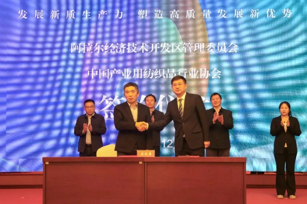 ![]() 懇談會還舉行了中國產(chǎn)業(yè)用紡織品行業(yè)協(xié)會與阿拉爾經(jīng)濟(jì)技術(shù)開發(fā)區(qū)戰(zhàn)略合作協(xié)議簽約儀式,阿拉爾經(jīng)濟(jì)技術(shù)開發(fā)區(qū)還與新疆棉盛棉業(yè)有限公司、河南貝文希衛(wèi)生用品有限公司簽署意向合作框架協(xié)議。