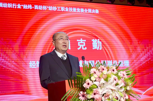 田克勤鼓勵選手,期待大家能以飽滿的熱情、嚴謹的態度、精湛的技能展開角逐,展現出紡織工人的風采與魅力。同時,通過比賽,激發更多紡織從業者學習技能、提升自我的熱情,形成崇尚技能、尊重人才的良好氛圍,為推動紡織行業高質量發展貢獻力量。
