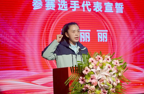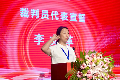 ![]() 阿克蘇技師學院高級講師李文革代表裁判員宣誓。