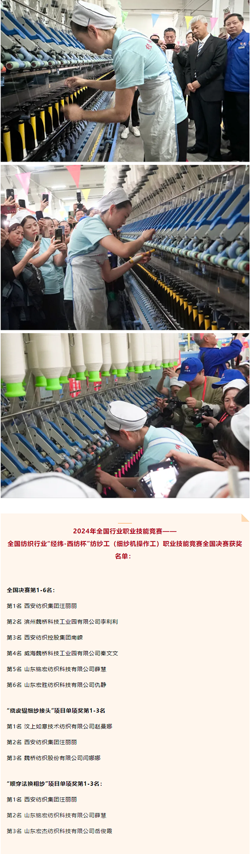 11月22日,經過兩天緊張激烈的角逐,2024年全國行業職業技能競賽——全國紡織行業“經緯-西紡杯”紡紗工(細紗機操作工)職業技能競賽全國決賽精彩落幕。