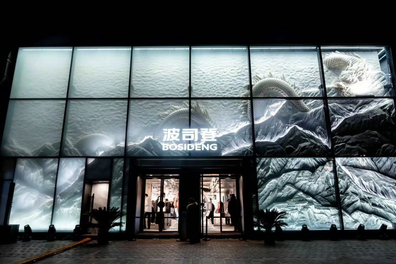 波司登北京三里屯登峰概念店以致敬登峰精神為靈感,圍繞“三極”——珠穆朗瑪峰、南極、北極為核心布局展開(kāi),店面以“珠峰+冰雪之龍”呈現(xiàn),一條栩栩如生的玉龍盤(pán)旋于珠峰頂部,象征著自然界的壯麗。談及設(shè)計(jì)理念,波司登形象管理中心總監(jiān)宋唯一追溯了登峰概念店的深厚底蘊(yùn):自1976年龍年誕生以來(lái),波司登歷經(jīng)48載春秋的不懈奮斗,已傲然屹立于中國(guó)羽絨行業(yè)巔峰,被譽(yù)為“冰雪之龍”。這一稱(chēng)號(hào)不僅彰顯了波司登的卓越成就,更與中華民族“龍的傳人”文化標(biāo)識(shí)相呼應(yīng)。