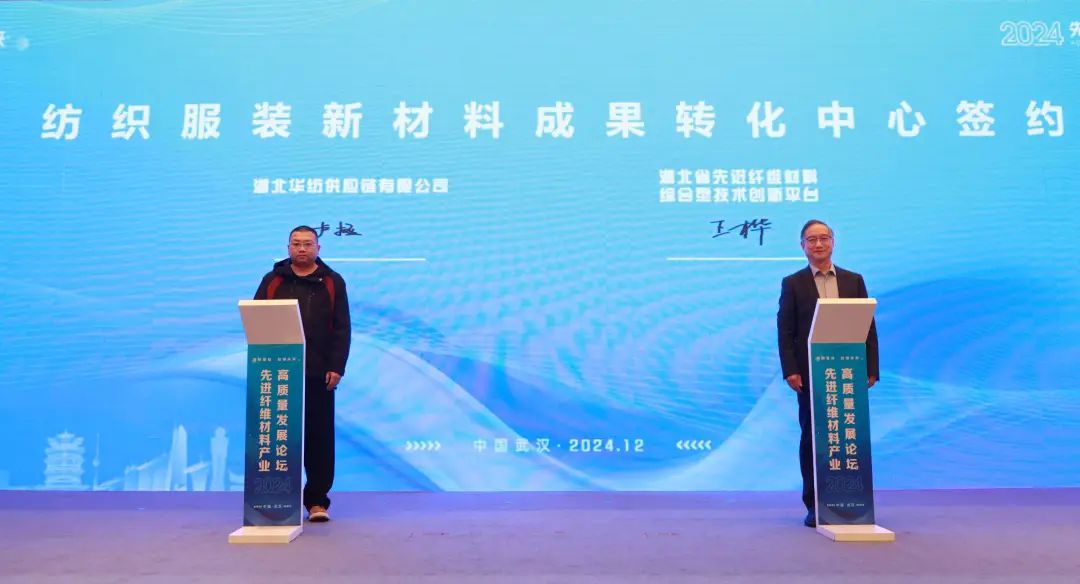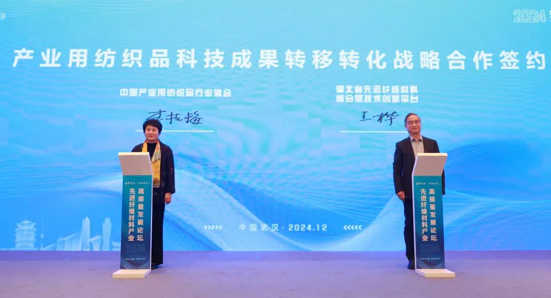 在簽約環節,湖北省先進纖維材料綜合型技術創新平臺與中國產業用紡織品行業協會及有關企業舉行了產業用紡織品科技成果轉移轉化戰略合作、華紡鏈共建紡織服裝新材料成果轉化中心、知識產權聯盟、專利(成果)供需對接、科技金融合作簽約儀式。