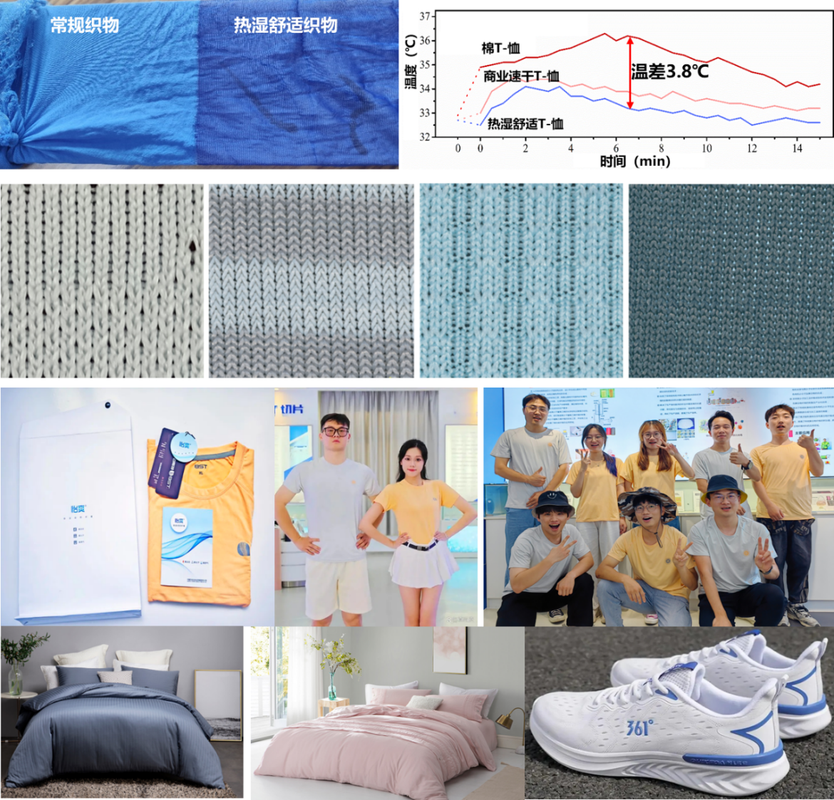 ![]() 項目技術已經成功跨界應用于服飾、鞋材和家紡等多個領域,贏得了市場的廣泛贊譽。中國石化儀征化纖公司將這款纖維注冊為“怡爽?”,且項目組與三六一度、愉悅家紡、李寧等知名企業攜手,設計了面料結構,共同開發了備受市場青睞的熱濕舒適性智能調節產品。由“怡爽?”所開發的智能T恤能夠敏銳地感應環境溫度和濕度的微妙變化,實現了雙向智能調溫調濕的卓越功能,為穿著者帶來始終如一的舒適體驗。