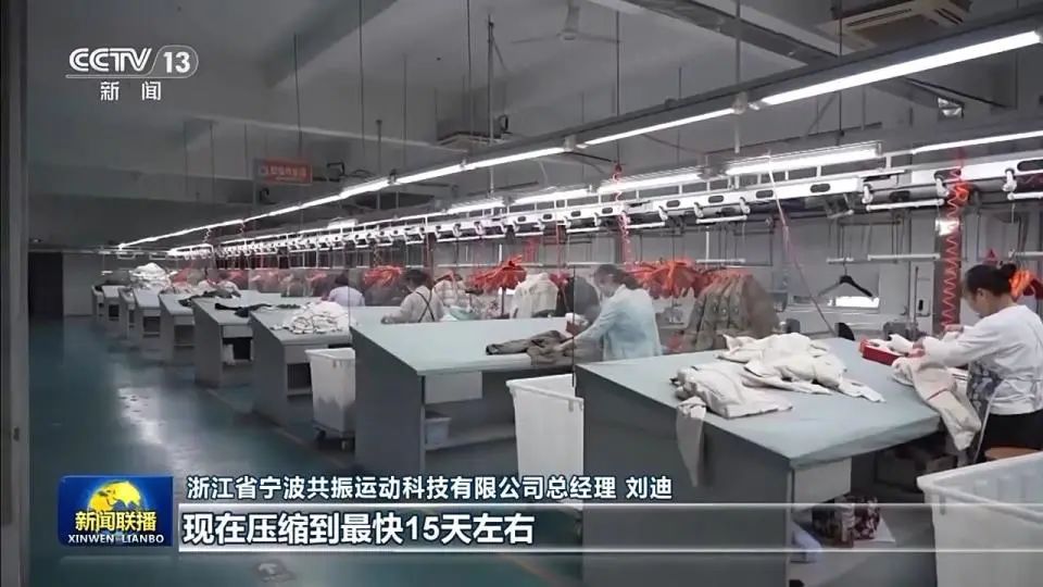 ![]() 浙江省寧波共振運動科技有限公司總經理劉迪:我們傳統生產周期大約在90-100天。現在我們壓縮到最快15天左右,我們必須得在管理和生產鏈條上要做到無縫銜接。
