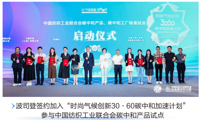 ![]() 波司登在第29屆聯(lián)合國氣候變化大會(COP29)“中國角”舉辦的共建綠色“一帶一路”的全球企業(yè)暨首屆亞布力可持續(xù)發(fā)展年會上,發(fā)布“1+3+X”ESG戰(zhàn)略及碳目標,確立了“以消費者為導(dǎo)向,引領(lǐng)可持續(xù)時尚”的ESG戰(zhàn)略愿景,并設(shè)定了“2038年前實現(xiàn)運營環(huán)節(jié)凈零排放”的碳目標,為企業(yè)可持續(xù)發(fā)展規(guī)劃了明確的減碳路徑。