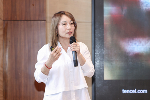 蘭精天絲?纖維如何通過創新產品矩陣引領行業創新升級?蘭精纖維(上海)有限公司紡織品業務拓展主管陳玉潔系統介紹了蘭精?環生纖?粘膠纖維、蘭精?環生纖?黑色粘膠、新型的蘭精?環生纖x悅菲纖?纖維、交聯型天絲?萊賽爾纖維、天絲?莫代爾Indigo等創新產品矩陣、性能優勢和產品應用,并針對蘭精天絲?品牌面料認證與吊牌申請流程進行解讀。其中,交聯型蘭精?萊賽爾A100纖維不易原纖化,易于染色和整理,是羊毛、合成纖維和蠶絲的理想混紡伙伴,特別是在針織應用中,可以給織物帶來溫暖、柔軟和舒適的感覺。