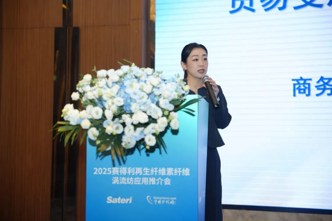 賽得利集團商務戰略分析高級經理趙麗君以國際形勢變化對市場的影響為題進行分享,她表示自5月12日日內瓦聯合聲明后,市場信號呈現積極轉向:纖維原料價格在持續波動后實現止跌回穩。在此趨勢下,纖維素纖維產業的發展路徑與行業變革動向將成為業內關注焦點。新形勢下纖維素纖維面臨新的機遇與挑戰,賽得利愿與產業鏈上下游共同攜手開發推廣纖維素纖維。