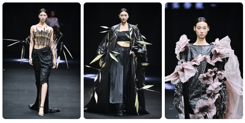 ![]() 評委們一致認為,這些創作者的設計邏輯成熟且完整,他們敏銳地將目光聚焦于傳統文化中“小而美”的具象元素,鮮明地展現出各自突出優勢,成功將跨界材料融入服裝設計,完成創意向商業市場的無縫轉換。這些作品深刻體現了“零浪費”可持續理念,設計師通過將廢棄布料重塑為裂織布,對行李編織袋進行二次創作,回收工廠與家庭閑置衣物,以及在快遞紙箱和外賣包裝中研發新材料。科技應用拉滿時尚張力,有的選手運用超輕黏土塑造賽博格機甲形態,以3D打印筆勾勒獨特紋樣,有的選手創新采用綠色環保PLA、TPU及玉米秸稈基材料,3D打印呈現非對稱結構的智能鱗片面料。來自海外國家及地區的設計師,更是將他們熟悉的本土文化與中國藝術無縫契合。