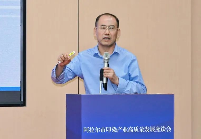 針對阿拉爾印染產業發展,他指出,新疆棉花纖維長度長、強度高、馬克隆值優、色澤潔白、一致性好,是高品質棉花的代表。基于纖維紗線和織物的無鹽高品質印染加工,可賦予新疆棉紡織品更高的附加值,顯著降低水、能源及化學品消耗,實現印染生產的綠色化和低碳化。
