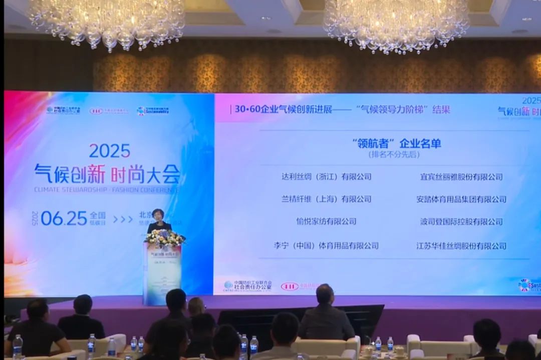 ![]() 6月25日“全國低碳日”當天,在中國紡織工業聯合會舉辦的“2025氣候創新·時尚大會”上,“30·60企業氣候領導力階梯測評”(以下簡稱“階梯測評”)評估結果正式發布。該測評構建起科學嚴謹的評估體系,圍繞“目標”“策略”“治理”“披露”“行動”五大核心維度設置評價指標,全面評估“30?60企業”的氣候變化應對行動成效。依據企業最終得分,測評將其劃分為“領航者”“銳進者”“蓄勢者”“起步者”四個層級,清晰展現企業低碳轉型的路徑與階段特征。