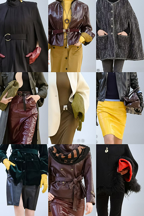 ![]() 本季的亮色搭配 —— 涵蓋琥珀橙、熔巖紅、香蕉黃等鮮活色彩的皮質單品,皮質在光影下呈現(xiàn)細膩光澤,既保留了皮質的高級質感,又以亮色打破秋冬穿搭的沉悶感,無論是搭配深色毛呢大衣形成 “冷暖碰撞”,還是與同色系皮衣打造 “順色層次”,都能輕松成為造型焦點,完美平衡經典皮質的沉穩(wěn)與亮色設計的活力。